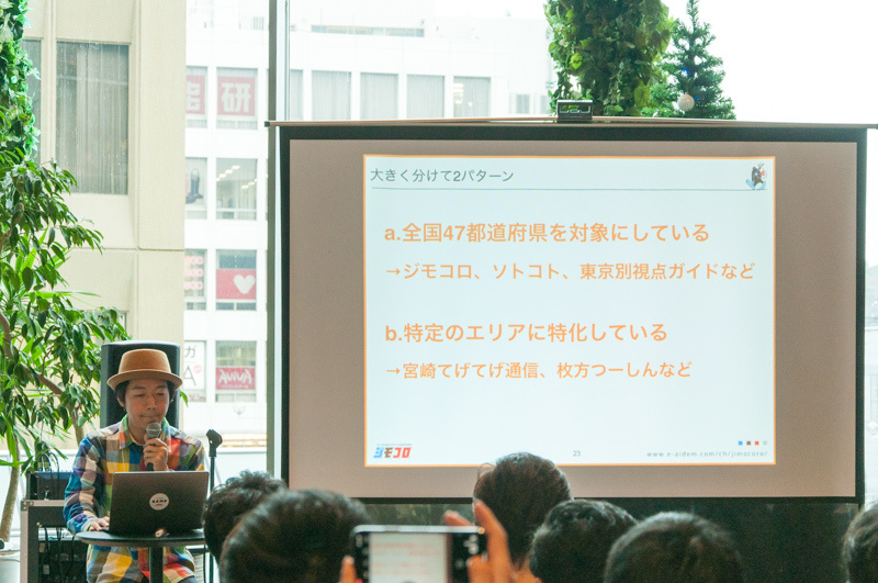 今回のテーマであるローカルメディアの定義というか、そもそもこれだけ多様化してる中でローカルメディアを定義付けするのは難しいんですけど、ざっくり言うとジモコロとか今回来られてる東京別視点ガイドとか雑誌でいうとソトコトさんみたいなところは、全国を対象にしてるローカルメディアである。
