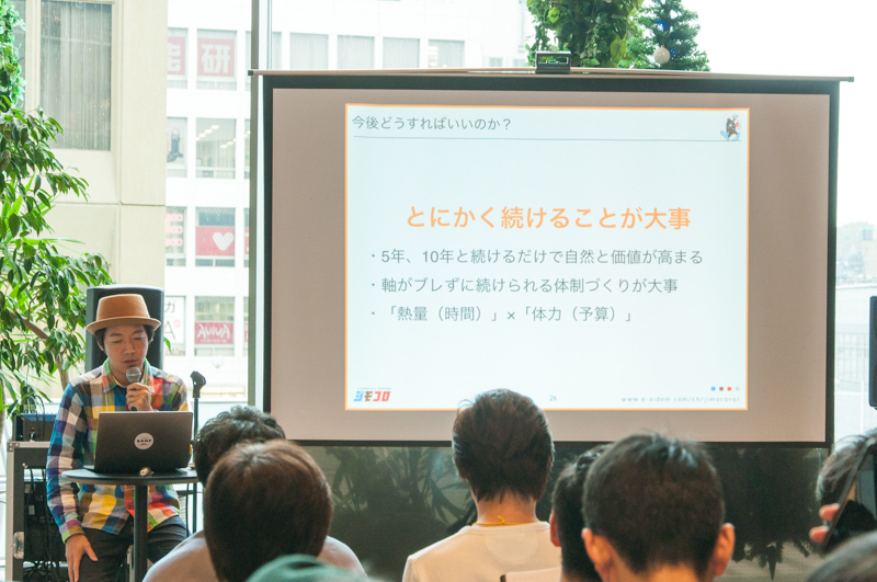 あとジモコロでもよく言ってるんですけど熱量・時間をどれだけかけて、それに対しての体力・予算ですね。お金がないと続かないっていうのは今日参加してるみなさん課題としてあると思うので、その両軸をどうやって作るかっていうのがほんとに大事です。
