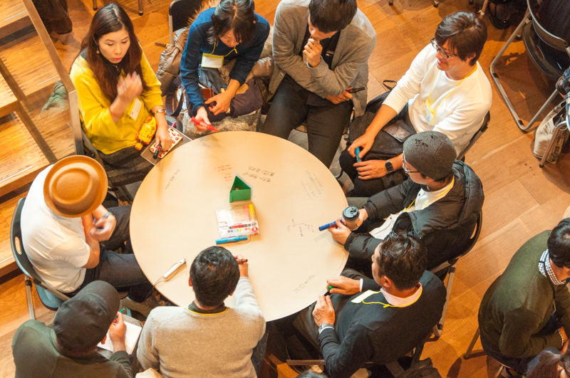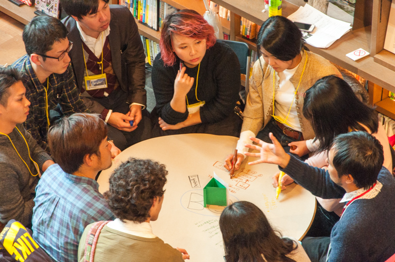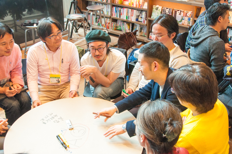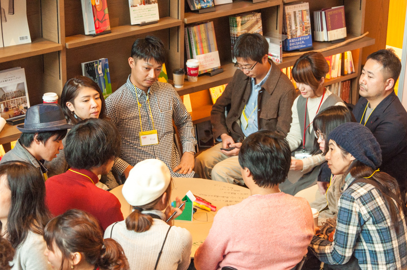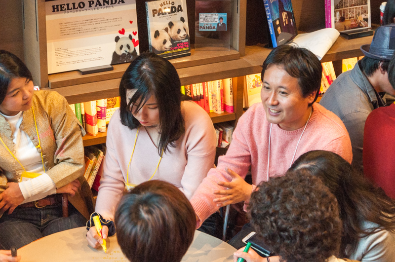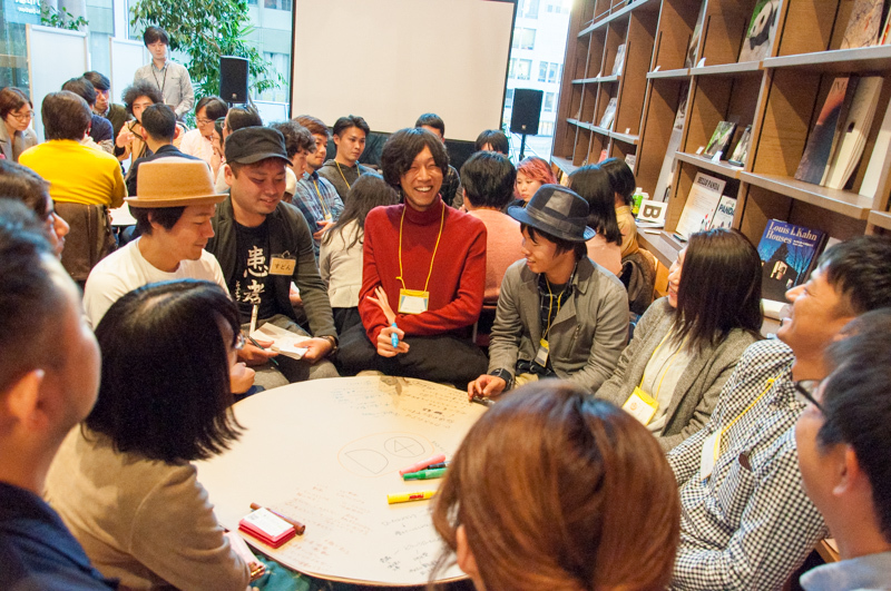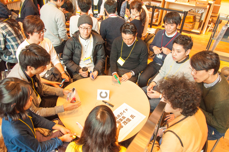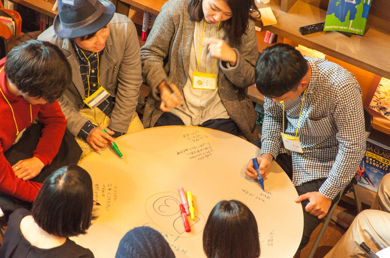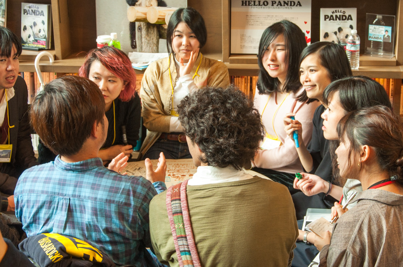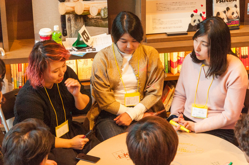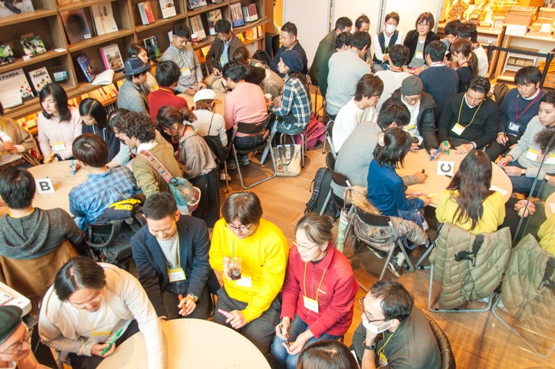 PRタイムあとは、参加者がA・B・C・D・Eの約10人ずつの5グループに分かれて、各テーブルにゲストが入り、テーマトークを行いました。