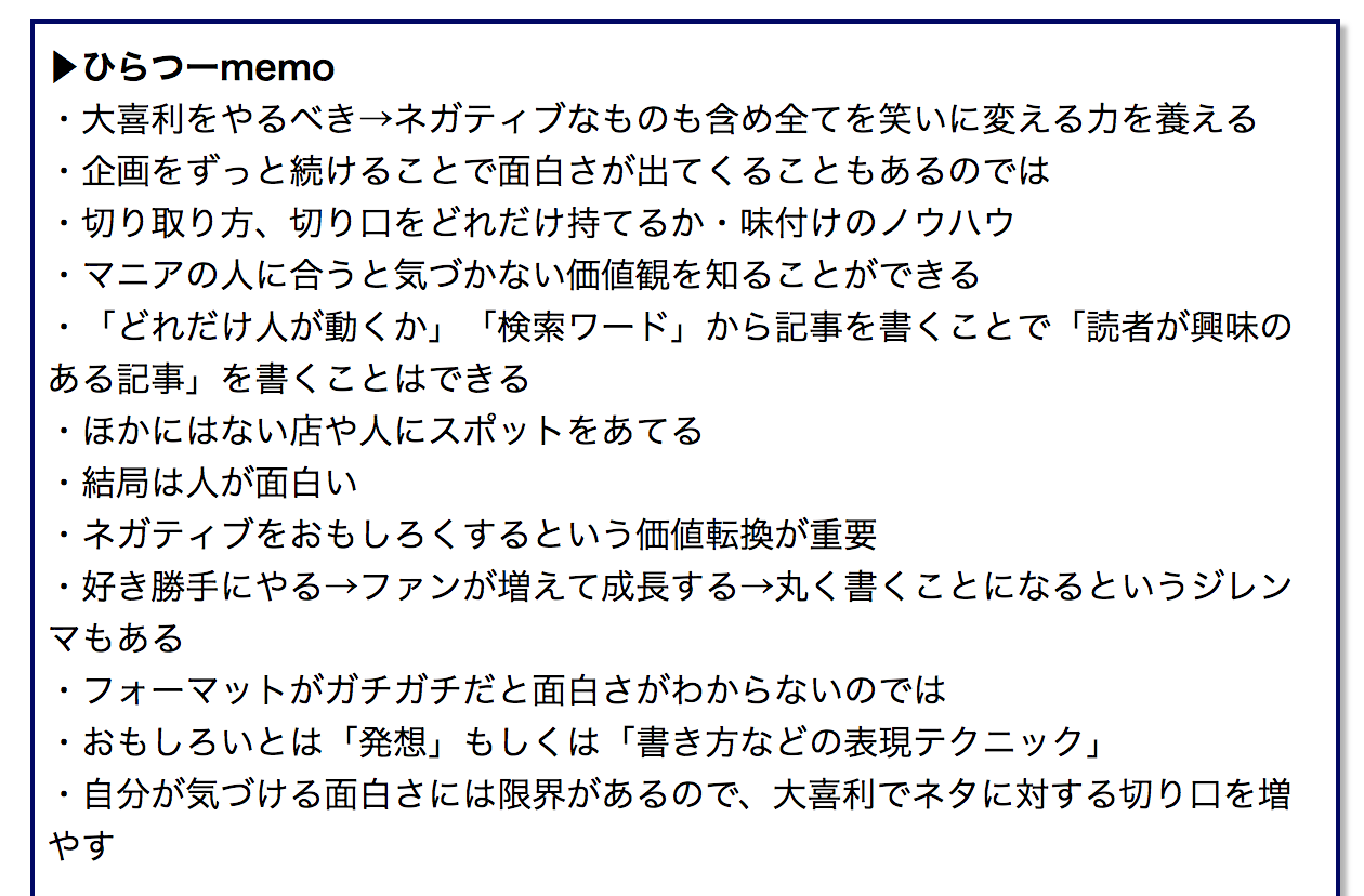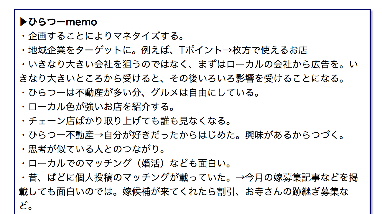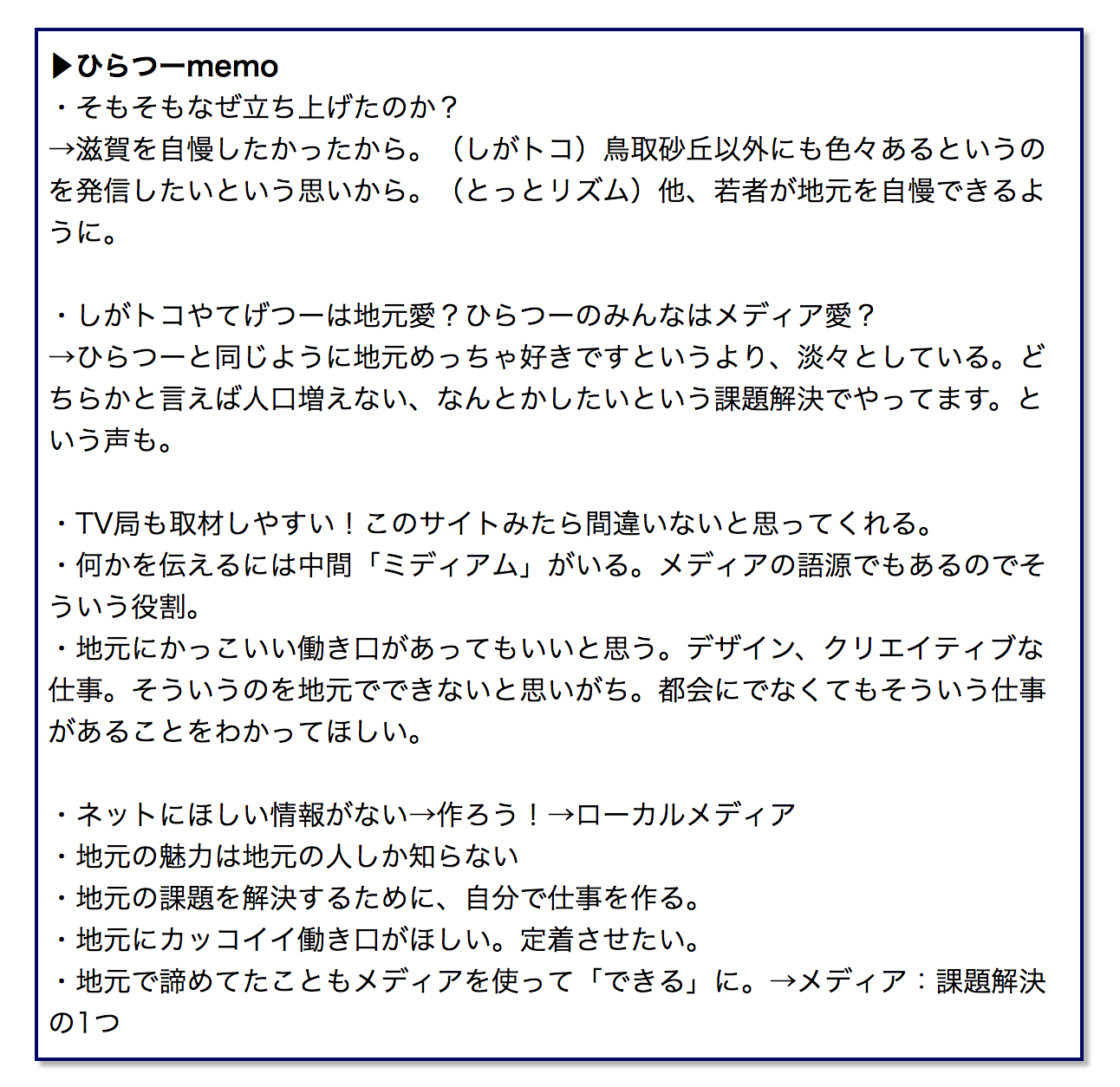 ひらつーさんもそうかもしれないですけど空間とかWEBだけにこだわらないでフリーマガジン作ってみるみたいなそういう横展開。時間も手間もかかっちゃうんですけど横展開していくことによってメディアの名前がどんどん広がっていくと。