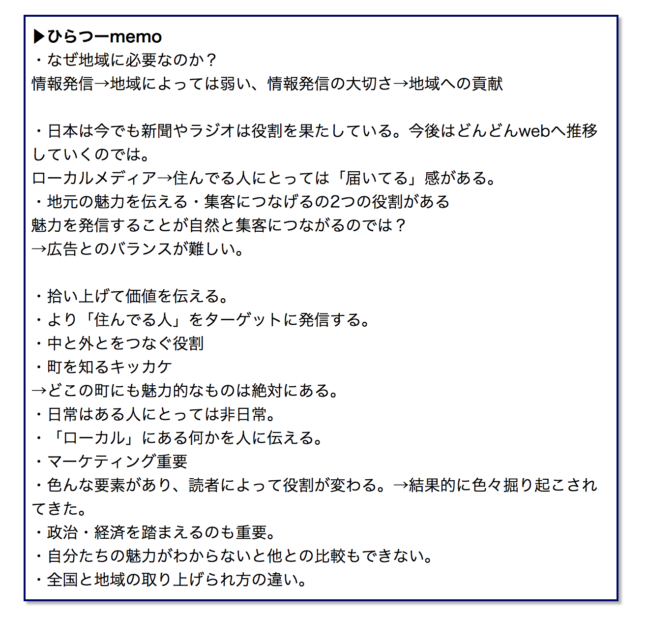 ①ローカルメディアの役割②コンテンツ、どうやって面白くするか③マネタイズについて④ローカルメディアの今後