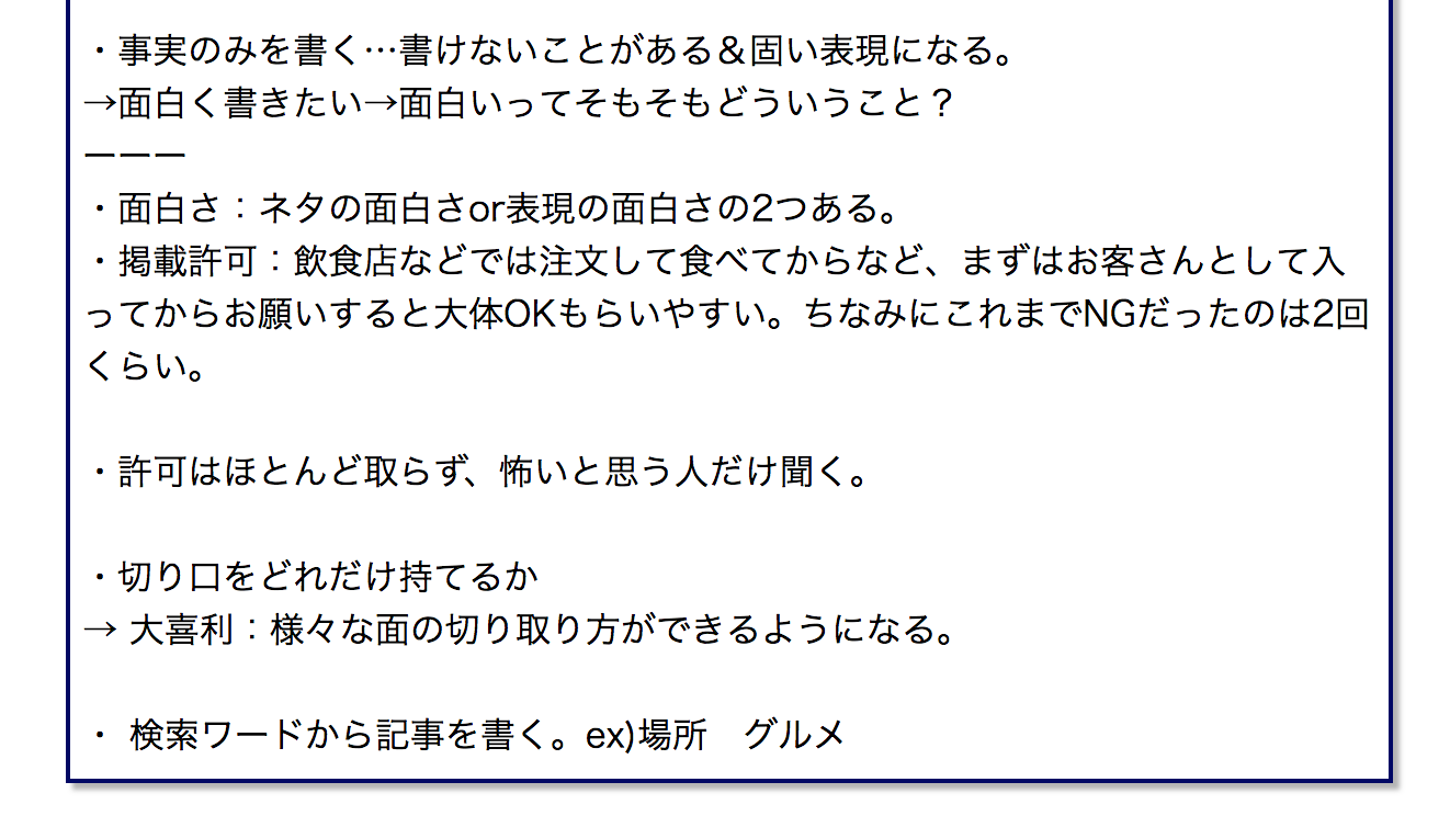 僕はプロ意識が高い記事とアマチュアイズム的なものがそんなに読み手にとったら関係ないと思っていて、逆にアマチュアっぽい方が親しみがあって読みやすいとか絶対あって、東京の広告業界の中でのWEBメディアでプロとしてライターを育てるっていう土壌にいると、どうしても求める水準が高くて背負っちゃうと人を選ぶ基準が高くなってそこのマッチングができないんですよね。